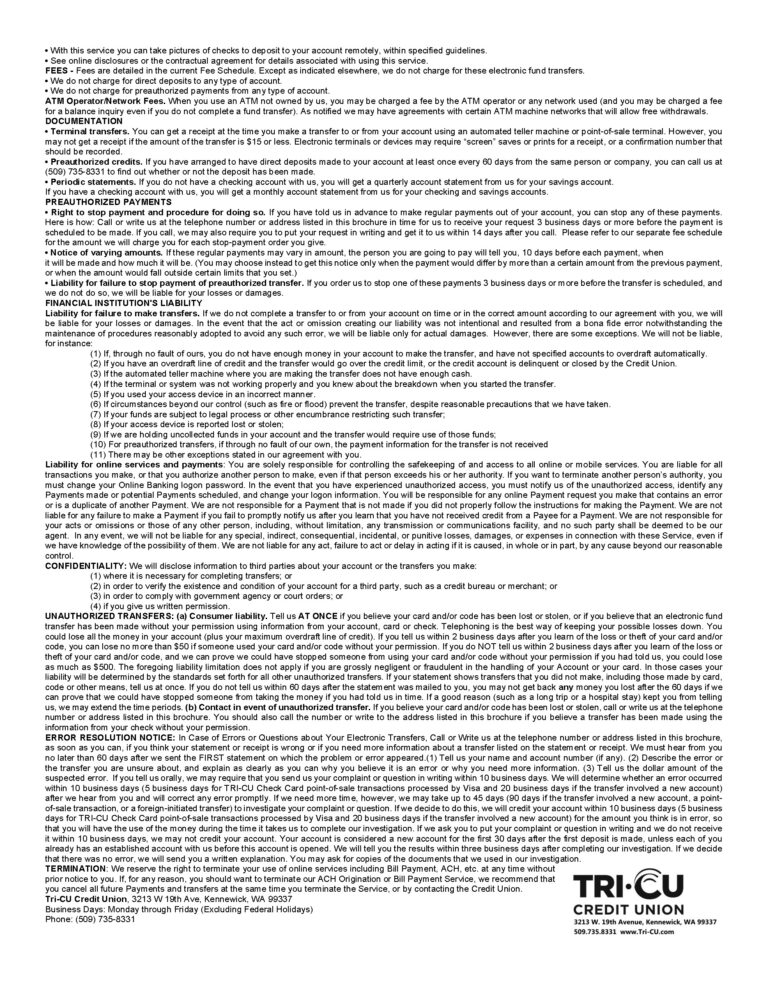 Electronic Fund Transfers Your Rights and Responsibilities page1